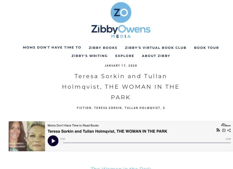 Zibby Owens: I'm excited to be here today with both the authors of The Woman in the Park. Teresa Sorkin and Tullan Holmqvist are coauthors of both the novel and the screenplay for The Woman in the Park. Tullan is an investigator, writer, and actress. Originally from Sweden, Tullan has a master's degree in political science from the University of Florence with literature and language degrees from universities in France and Italy. She has also studied screenwriting and acting at NYU and BU. She currently lives in New York with her husband and two sons. Teresa Sorkin is a TV producer and founder of Roman Way Productions. A graduate of New York University and Bocconi University of Milan, Teresa started as a journalist for Rai TV for which she hosted her own show. She currently lives in New York with her husband and two children.